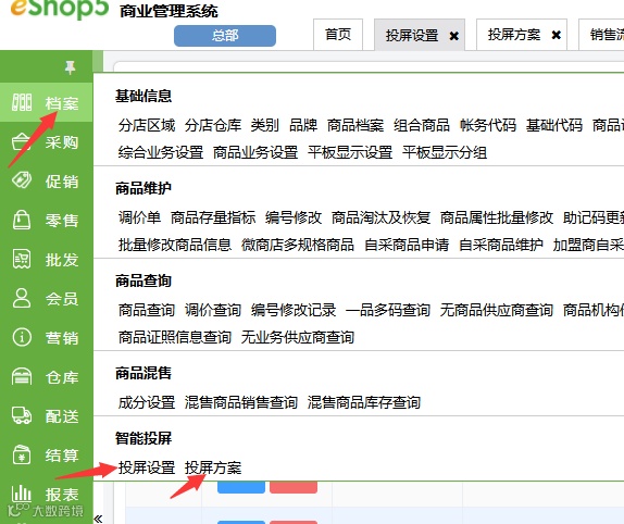 1.进入设置,做前期准备工作。【档案】—【投屏设置】、【投屏方案】,如下图所示:
