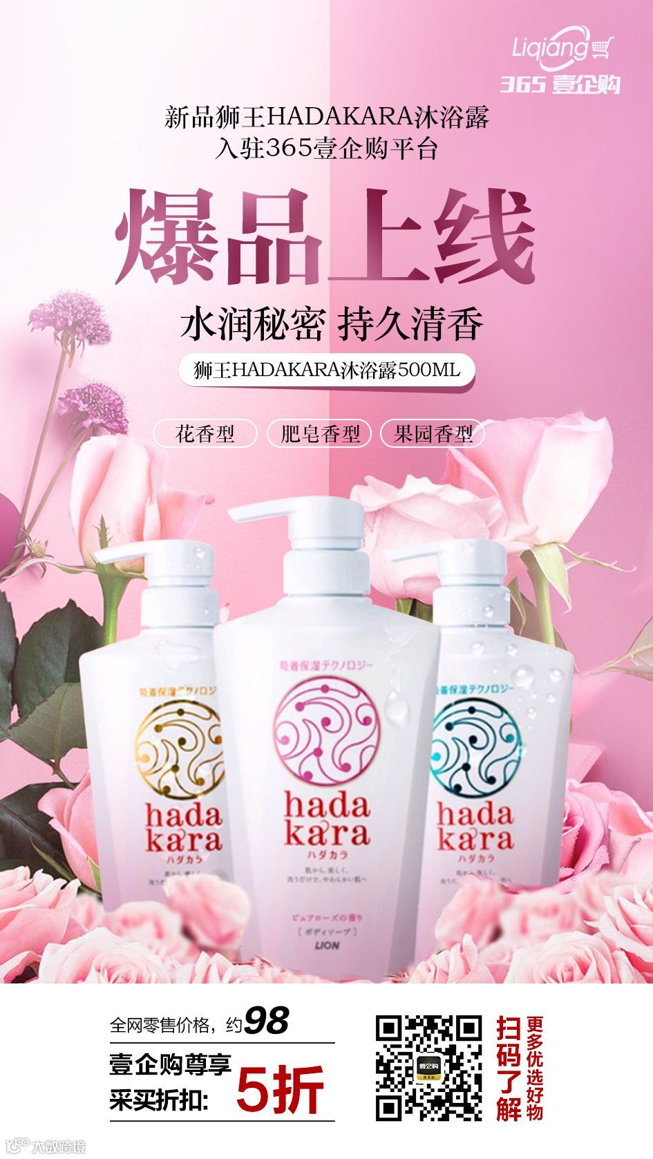 狮王(LION)公司于2016年起始发售的,具有显著保湿效果的hadakara沐浴液,其名称起源于公司研究的一种能将身体洗干净,却不会被水冲走保湿成分,可以吸附在身体表面持续作用,名为“hadakara体”的特殊成分。