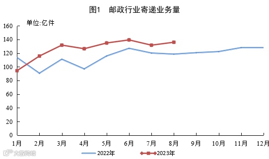 8月份,邮政行业寄递业务量完成135.9亿件,同比增长14.8%。其中,快递业务量完成111.6亿件,同比增长18.3%。