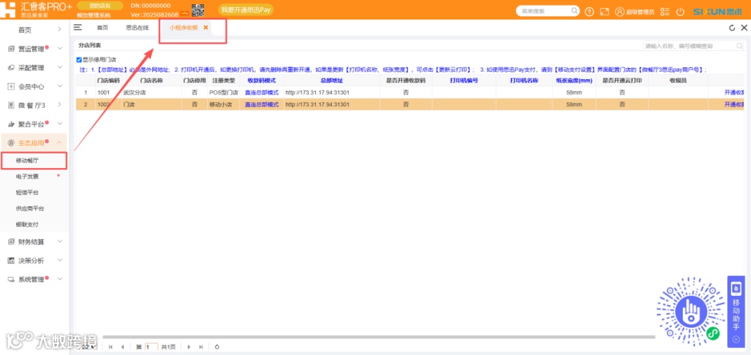 1.生成路径:在汇食客后台 - 生态应用 - 移动餐厅 - 小程序收银。