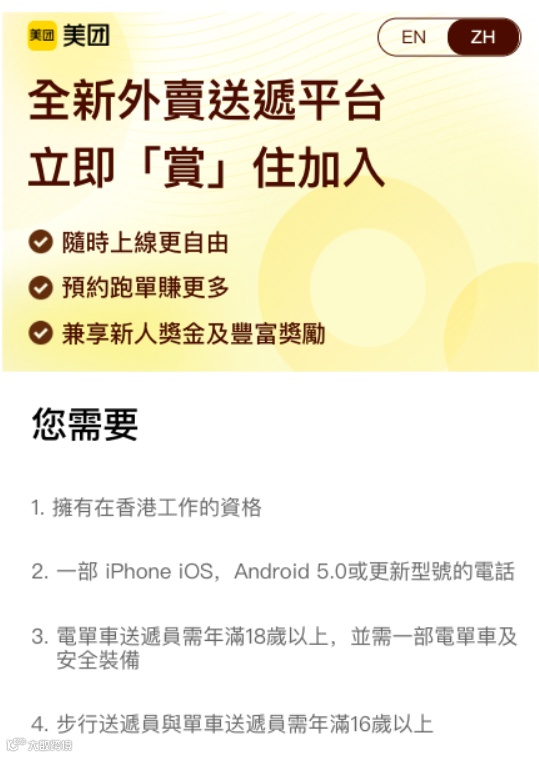 据《香港经济日报》报道,美团在多个渠道发布中国香港外卖骑手的渠道招聘广告,展示出强大的野心以及势不可挡的战斗力。当然也有不少人疑惑,此番进入香港市场对美团到底是风险还是机遇,美团能不能把骑手稳住,支撑外卖扩张的核心是什么?