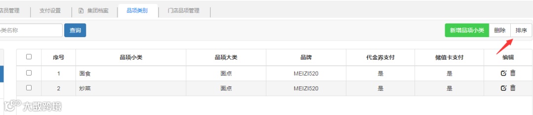 品项小类顺序可以在美食家后台——集团档案——品项类别——点击排序按钮,光标选中小类拖动来调整顺序,调整完毕确定保存,门店下传数据即可生效。