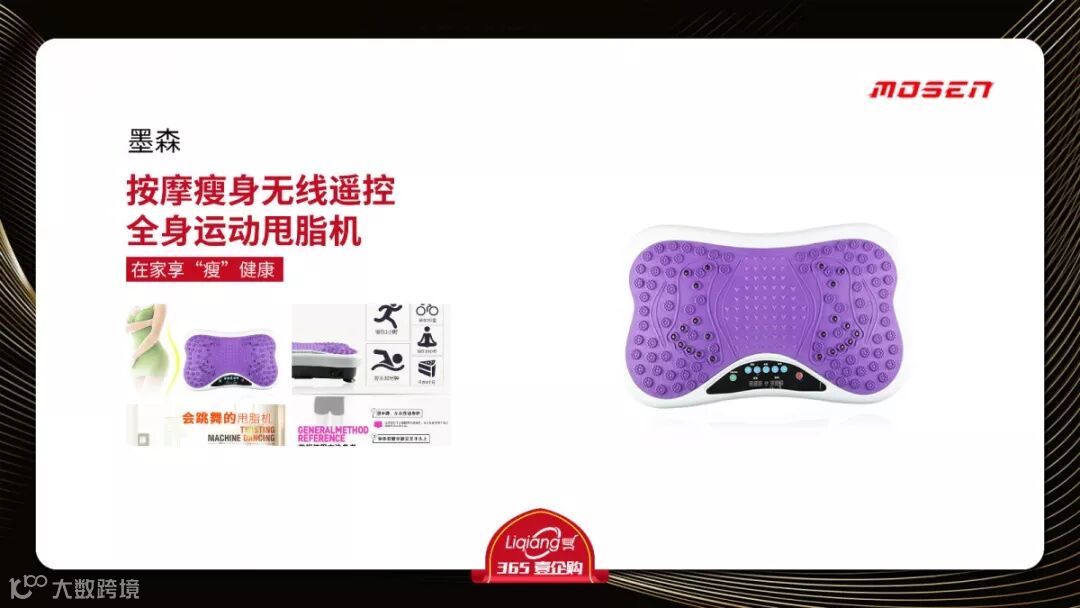 墨森按摩瘦身无线遥控全身运营甩脂机:采用运动科学中的平衡侧动,振幅叠加原理,让全身的脂肪运动起来,消耗热量,消除体内围积过量的脂肪,每天您只需使用5-10分钟,相当您慢跑1个小时所消耗的热量,相当于跑步运动30倍的速度燃烧卡路里,让您真正在家享“瘦”健康。