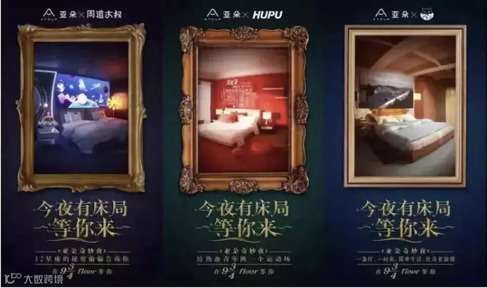 这场跨界合作还有个极引人遐思的话题:今晚有床局。在微博上,亚朵联合这些粉丝基数庞大的KOL联合发布了系列海报,并引出了一句具有跨次元感的slogan:在9又4分之3楼层等你(灵感来自于《哈利波特》中的九又四分之三站台)。