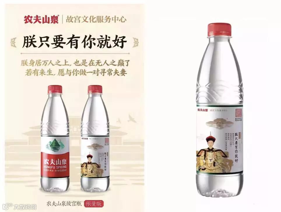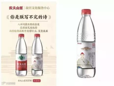 之前借着《延禧攻略》的东风,不甘只做一瓶水的农夫山泉再次跨界,联手故宫推出了“限量故宫瓶”。