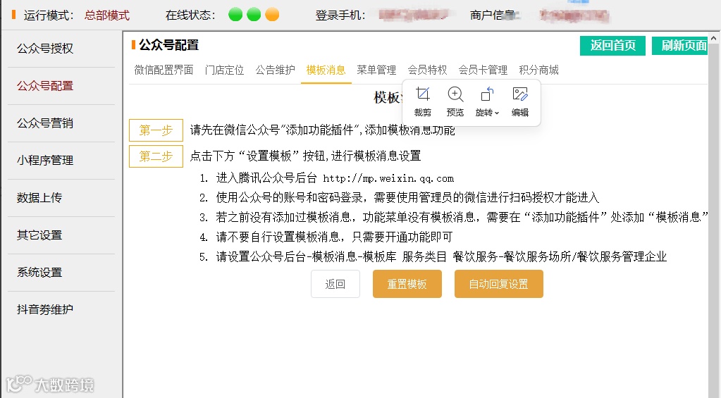 3.请不要自行设置模板消息,只需要开通功能即可。