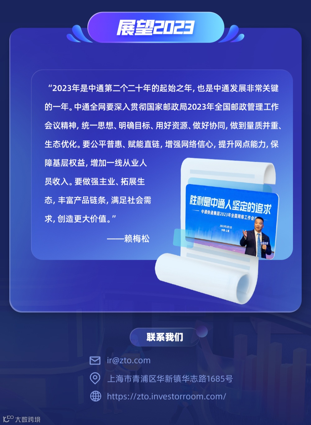 2023年3月16日,中通快递(纽交所代码:ZTO及香港联交所代码:2057)公布了其2022年第四季度及2022年全年未经审计的财务业绩。