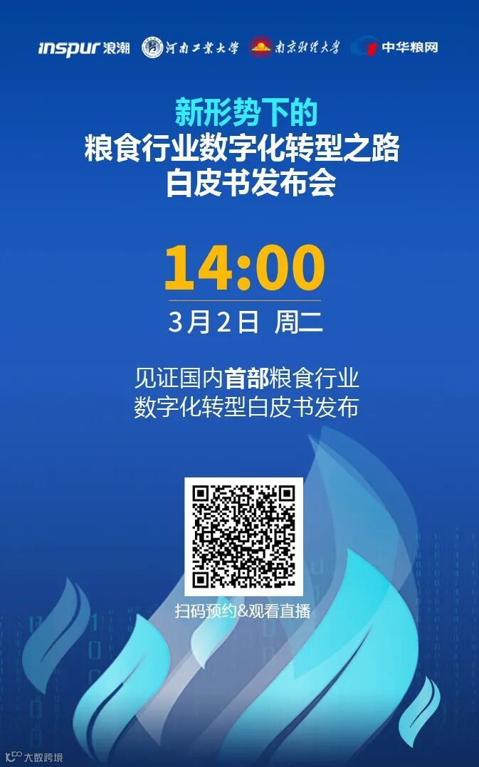 今天,新形势下粮食行业数字化转型之路白皮书发布会即将线上举办。