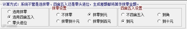 如抹零方式,系统提供三种抹零方式:选用抹零、选用四舍五入、零头进位。