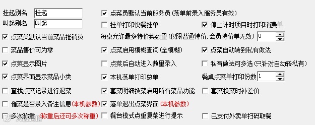 在前台营业参数-点菜参数中根据各门店的营运需要勾选相关参数。