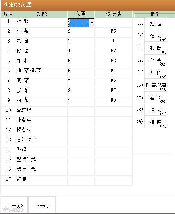 点菜时快捷键可根据收银员自己的操作习惯进行自定义(点菜界面-其他-设置),当需要查看快捷键时可按F1查询。