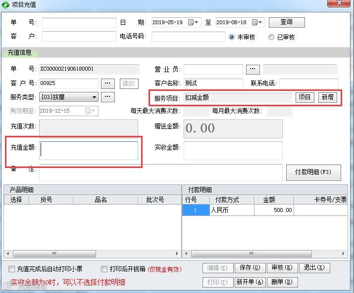 针对已经充值的服务项目进行次数消费扣减或者金额消费扣减。