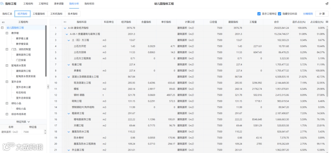 项目完成后自动解析单方造价、材耗系数等关键指标,形成企业数据库。