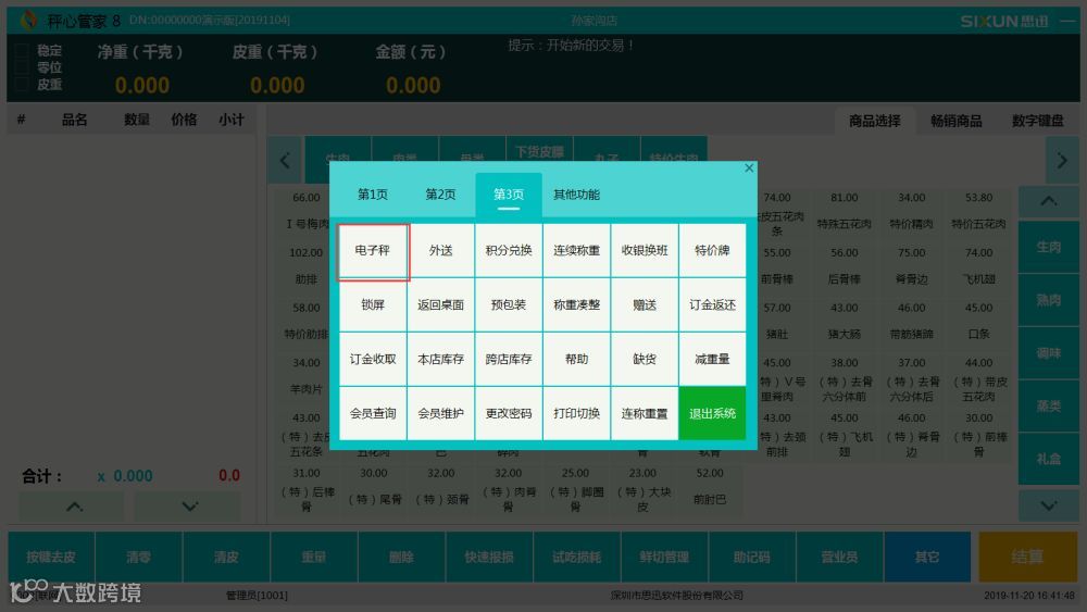 使用以上调价方案变更商品售价后,如门店有使用条码电子秤,需要将调整后的商品售价在秤中进行下传更新。可在门店收银界面,其它-电子称功能中进行处理。