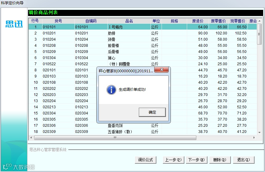 由于生鲜商品保质期短、易变质、腐败等特性,为了保证快速销售,往往价格变化会很大,大多商品价格是一天一价。针对商品价格变动频繁,就需要科学变价的手段提供支撑,可使用软件中的商品调价单、商品智能调价、科学定价向导实现快速调价的诉求。