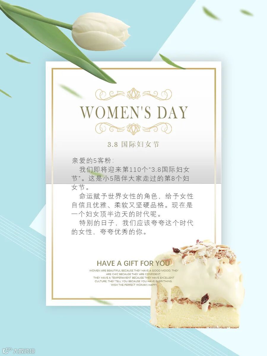 小5在这里祝:所有的女生节日快乐!希望你们过自己喜欢的生活,爱所爱更爱自己。