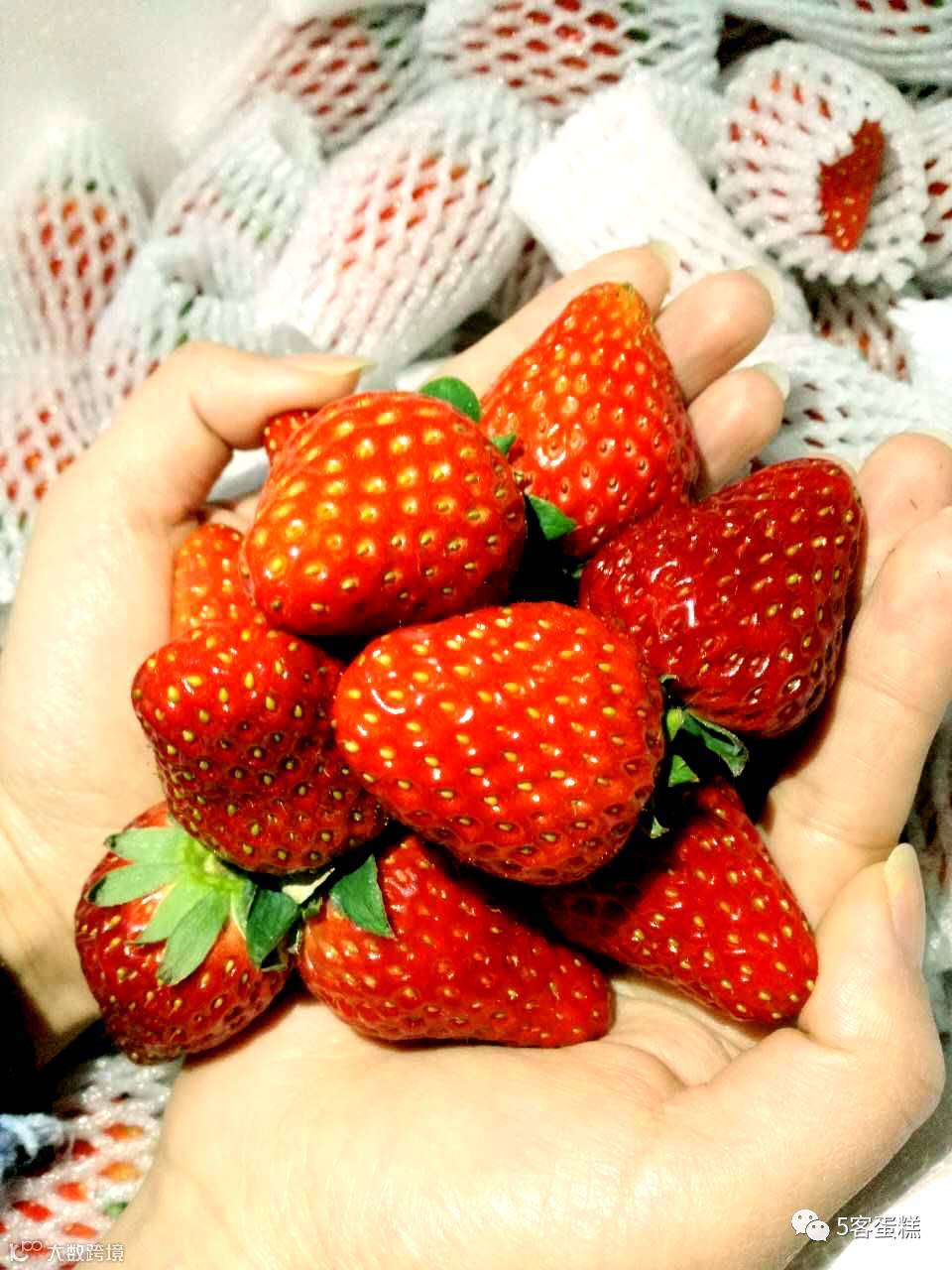 这是刚从园子采摘回来的新鲜草莓,每一个都被小心地呵护包好,因为太喜欢,随手捧一捧,就这么看着,心都甜了
