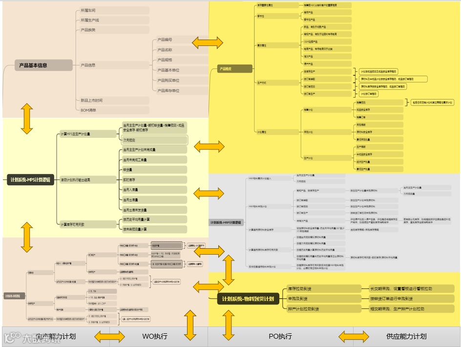 上次用PPT做了份供应链数据蓝图,看起来大家喜欢那样清晰明了的表达方式。我想到了思维导图,曾经做采购策略库,发觉思维导图很好用,恰巧有个多级BOM的计划提升课题,末了,便利用思维导图汇总了一个较为详细和缜密的,代表供应链计划底层数据的图分享给大家,没想到数据太多无法在一个图上(见左图)清晰表达,