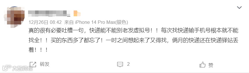 虚拟号不便捷:驿站在对快递进行入库操作时,由于隐私面单使用虚拟号码,这些号码往往只有四位数字,难以记忆和拨打。一旦虚拟号失效或打不通,驿站人员需要花费大量时间寻找真实电话,甚至可能因此导致快递延误。