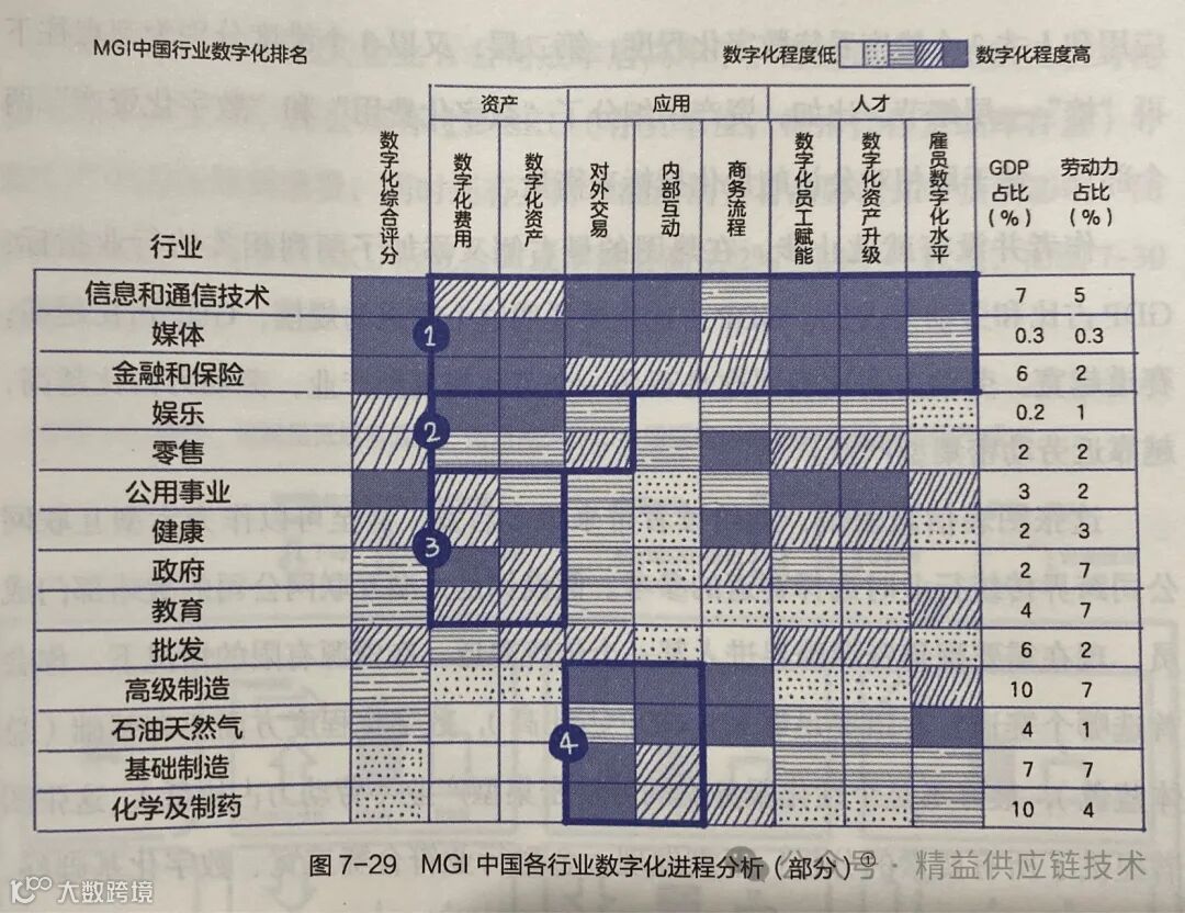 无意中看到2017年麦肯锡MGI对中国行业的数字化排名。六年前的工业化领域,数字技术的应用程度并不高,一方面可能是很多国内企业源于工业化发展的初期阶段,潜意识里会认为富足的劳动力是中国制造的优势,与其花大力气琢磨那些虚拟的东西,还不如一双勤劳的手;另一方面可能仍然来自数字技术人才的短缺,而对于一些尚挣扎在生存阶段的中小企业,满脑子关心的都是温饱问题,花一笔不菲的钱搞数字化想都不用想。