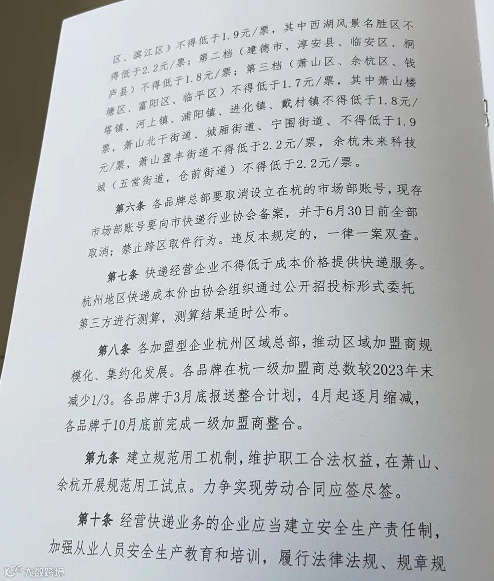 为保障末端网点稳定和维护快递员合法权益,《杭州市快递行业自律公约》要求加盟型企业开展派费核算,根据测算结果确定不同区块的最低派费。