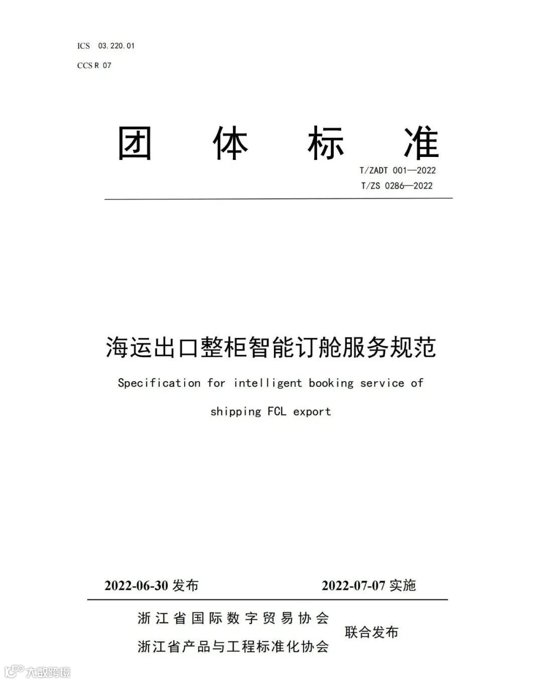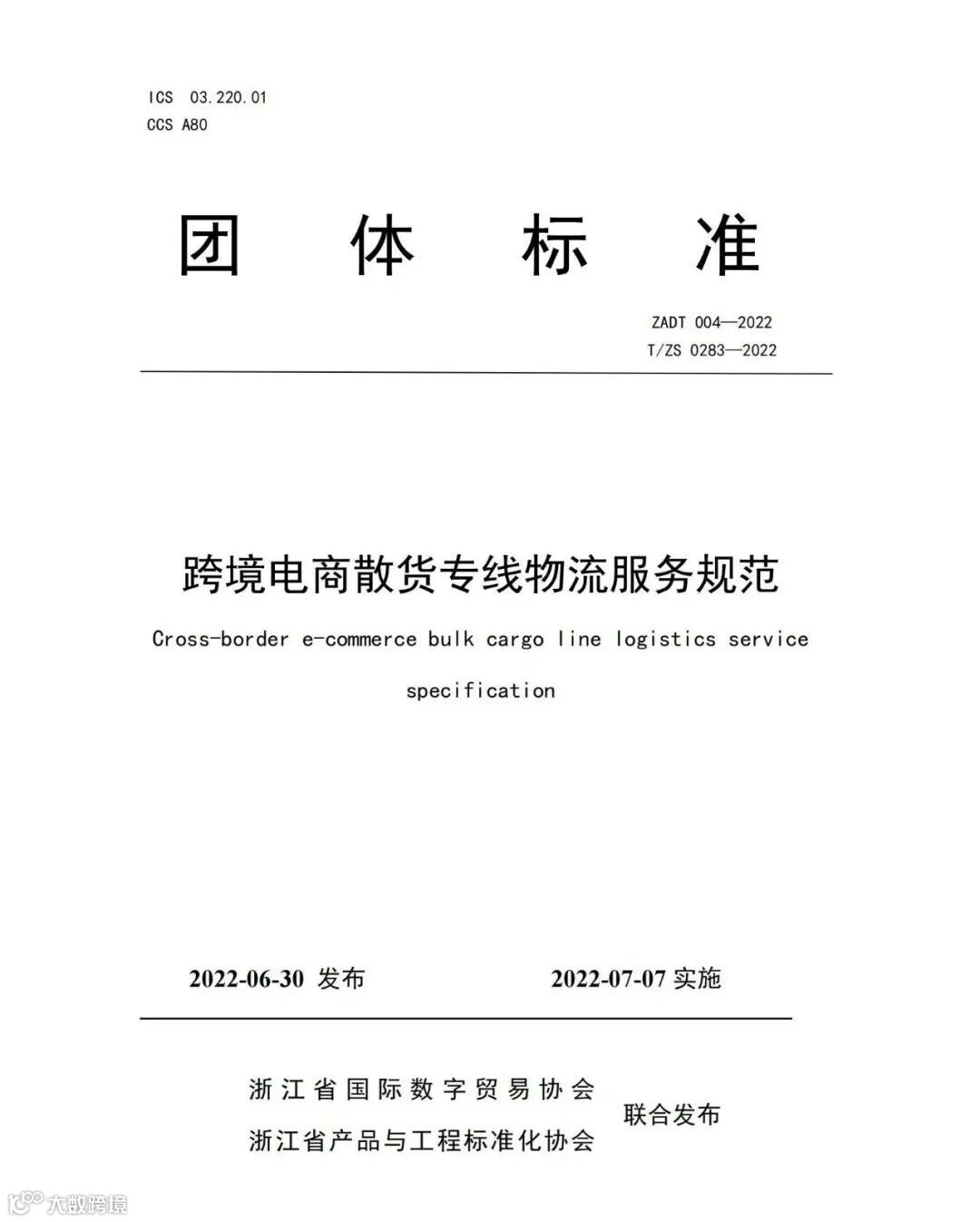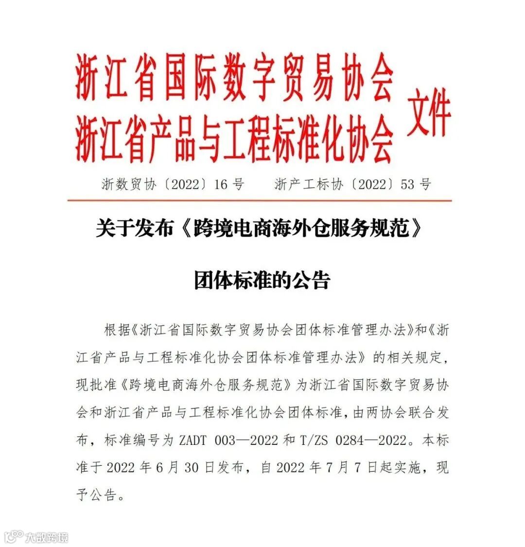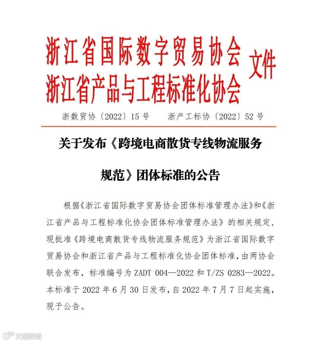 日前,浙江省国际数字贸易协会、浙江省产品与工程标准化协会联合发布文件,海盟控股集团作为第一起草单位主导制定的《海运出口整柜智能订舱服务规范》、《跨境电商物流从业人员培训规范》、《跨境电商海外仓服务规范》、《跨境电商散货专线物流服务规范》四项团体标准于7月7日正式实施,海盟核心竞争力得到进一步提升。