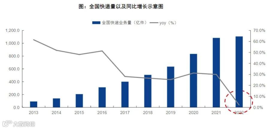 去年,行业快递增速首次出现业务量低增长,同比增长2.1%,要知道在那之前我国快递量一直高于29%。