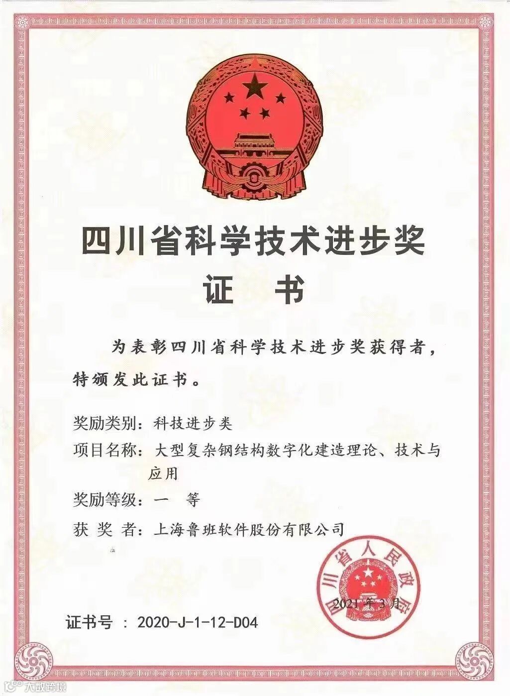 2021年3月17日,四川省科学技术奖励大会在成都举行,由鲁班软件股份有限公司与中国五冶集团等单位联合完成的“大型复杂钢结构数字化建造理论、技术与应用”项目荣获四川省科技进步一等奖。