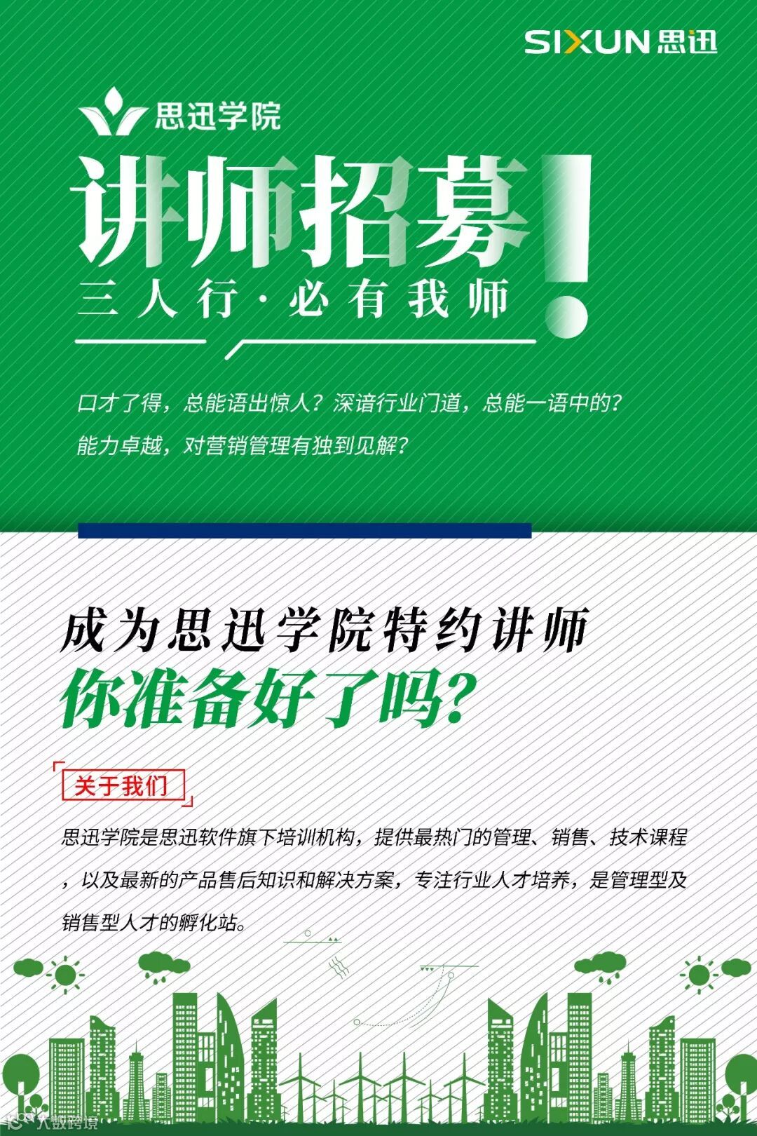 O2O、大数据、新零售,行业变化日新月异,企业管理、经营面临挑战,人才培养迫在眉睫。思迅学院特约讲师招募计划现已开启,如果你有丰富的行业经验,有一身销售本领,欢迎你加入思迅学院,一起来聊聊干货,一展你的才华。