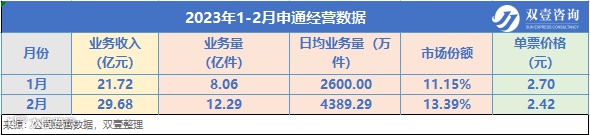 根据国家邮政局发布的行业数据,申通2月市占率达13.39%,打破了去年8月纪录,再次刷新2016年上市以来单月新高。日均业务量达到近4400万单,比去年11月份旺季多了近300万单。