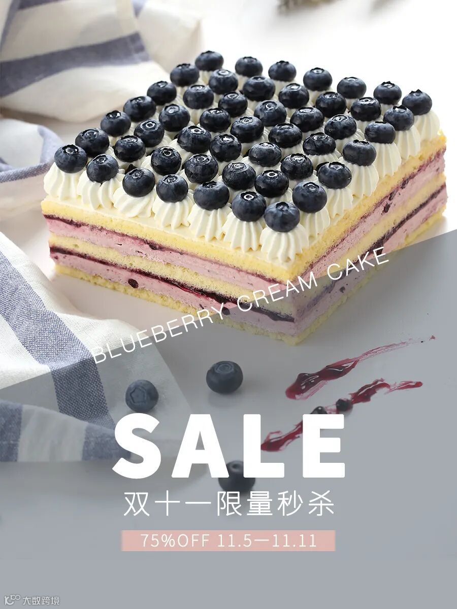 新西兰安佳淡奶油/蓝莓香缇奶油/新鲜蓝莓/特制蓝莓酱/牛乳蛋糕胚