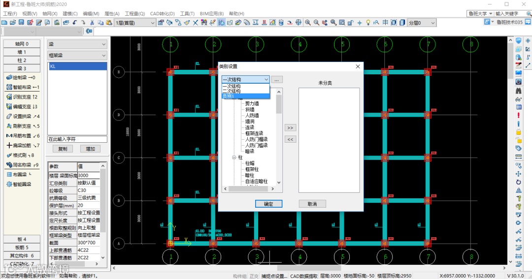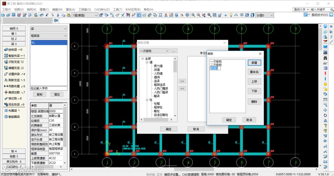“BIM应用”-“布施工段”类别,选择“施工段类别设置”,可以划分为一次结构和二次结构,也可新建类别,点击按钮,可以新增,可看出已新增好的类别,如下图所示:
