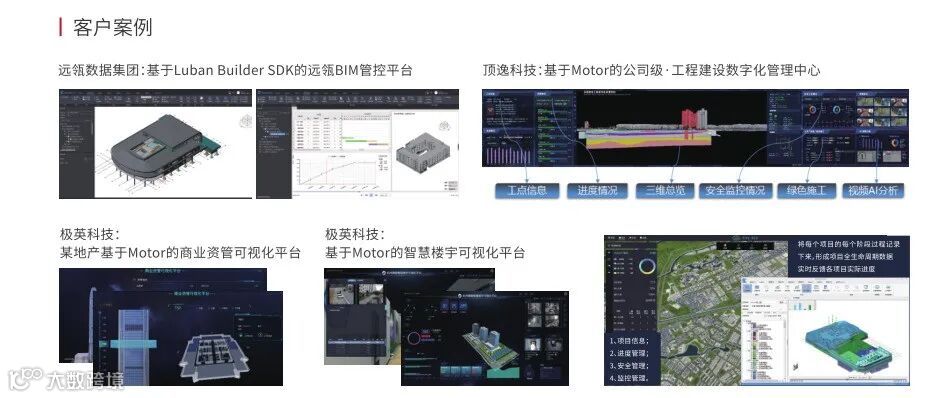 鲁班BIM管理平台已在迪士尼、上海中心、苏州中心、绿地西南中心、三亚亚特兰蒂斯酒店、乐清湾大桥、九绵高速等地标性建筑和基础设施建设700多个大型复杂项目中深入应用,以及在中建八局、中建二局、中国五冶、二十三冶、中交一公局、中交二航局、中核二二、贵州建工等400多家单位企业级深入应用和推广。