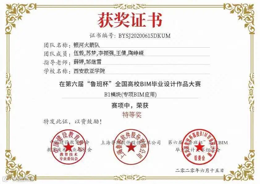 6月13日,第六届鲁班杯全国高校BIM设计大赛全国总决赛在线上举办,西安欧亚学院人居环境学院师生首次参赛,由邹继雪、薛婷老师带领工程管理1702班伍毅、陶峥嵘、李振强、王倩、苏梦同学组队参赛。