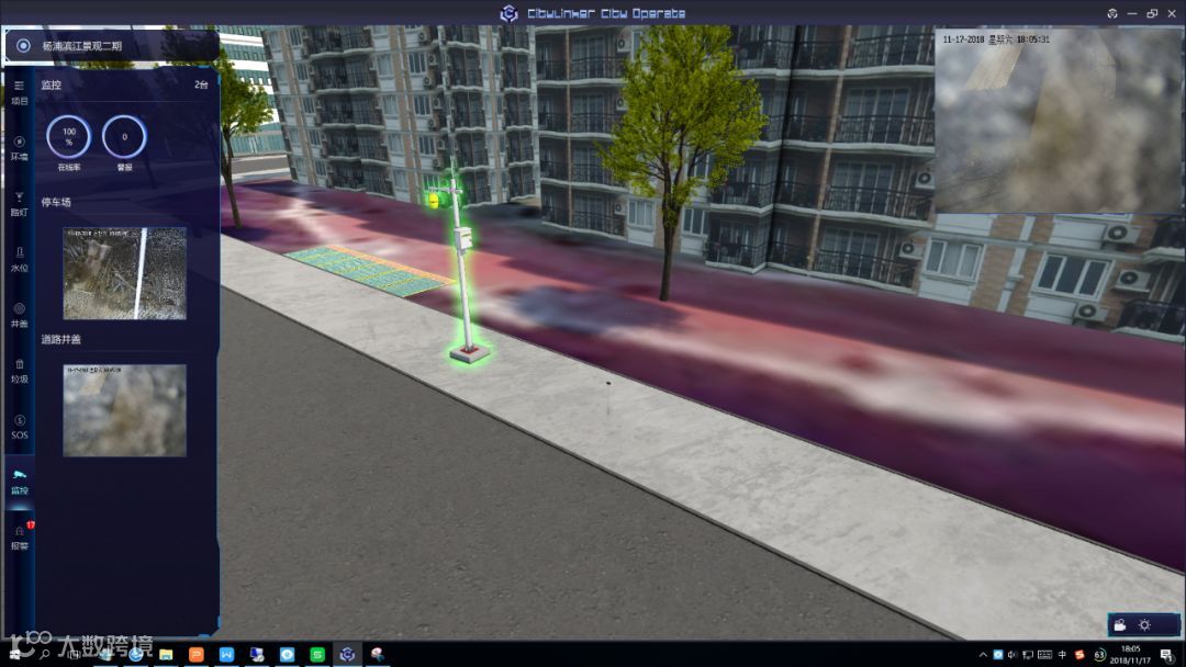 结合智能物联网设备,可以模拟杨浦滨江区域内的路灯在夜间的亮度和覆盖范围,同时可以定位到路灯具体位置,监测其当前的运行状态及维护情况,结合周边光线环境及人流情况实现灯光亮度的自动调节。