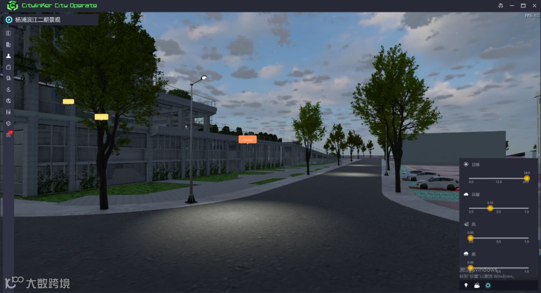 利用鲁班CIM技术1:1还原杨浦滨江区域的规划设计成果,包括地上建筑、景观、设施,以及地下管线,提前对杨浦滨江建成后的整体环境进行预览。结合驾车漫游、步行漫游等空间漫游模式,可以以第一人称视角更加直观地置身于三维场景中,对建成后的杨浦滨江公共空间进行游览,从而对规划设计成果进行提前体验,有助于分辨规划设计方案的优劣,从而及时进行调整改进。