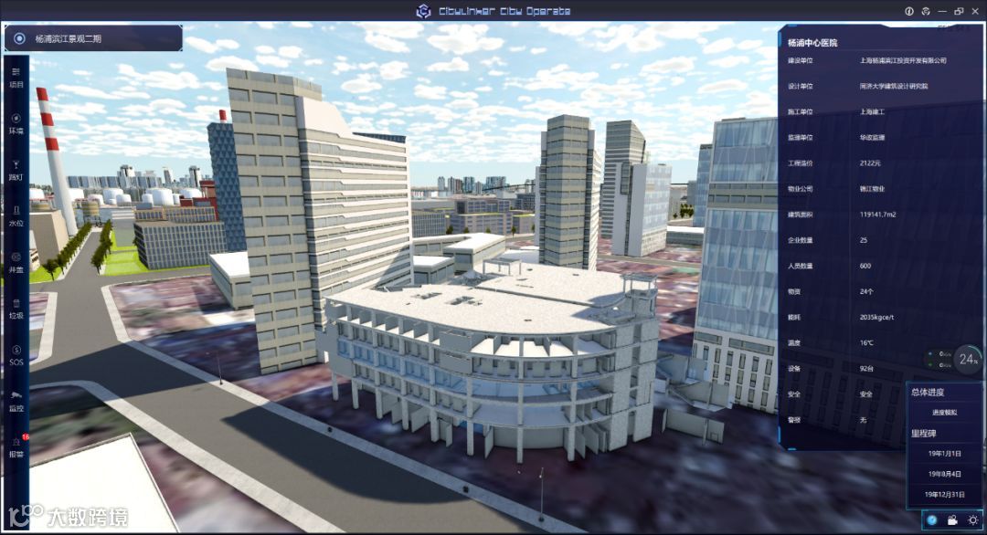 由于杨浦滨江区域很多建筑都是正在改造升级过程中,CIM平台可以对改造中建筑物的进度情况进行模拟,根据关键里程碑查询查询建筑施工情况,方便掌握整体改造进度。