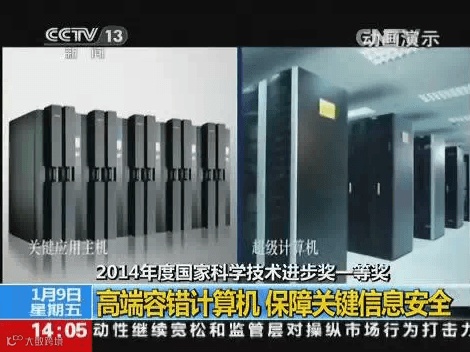 1月9日,2014国家科学技术奖励大会在人民大会堂举行,浪潮高端容错计算机被授予国家科技进步一等奖。当日,CCTV新闻频道组织“高端容错计算机保障关键信息系统”为主题的专题报道。