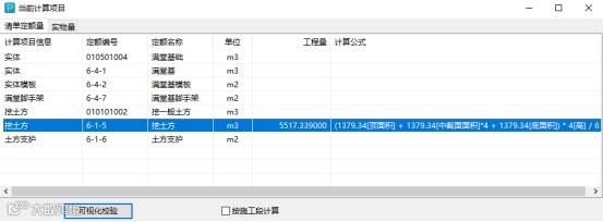 以上为手算时使用的计算公式,在鲁班大师(土建)软件中,挖土方量可使用可视化校验功能查看构件的实体三维和具体的计算公式。