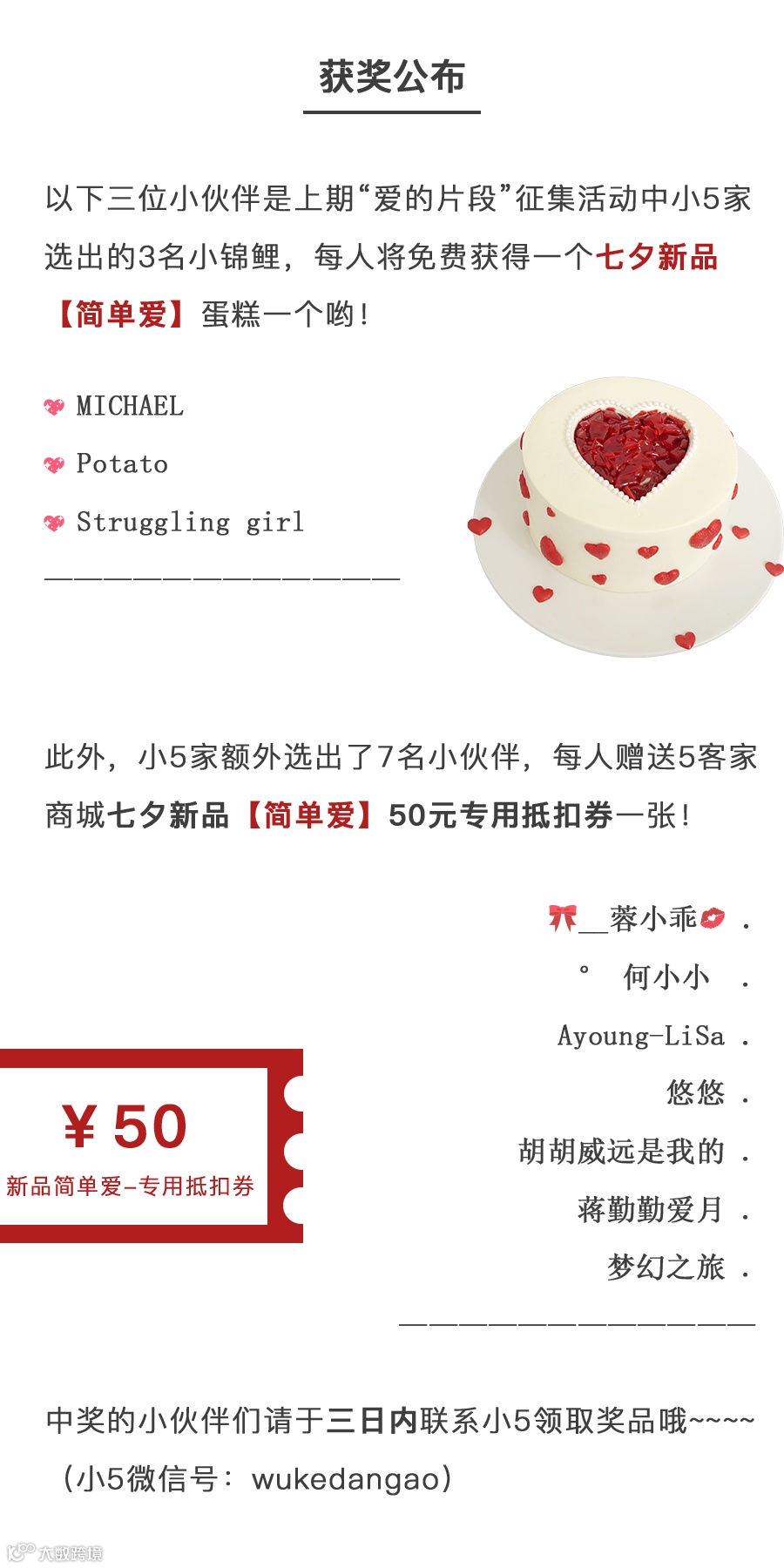 点赞第2-3名,赠送七夕专款蛋糕【50元抵扣券】一张!