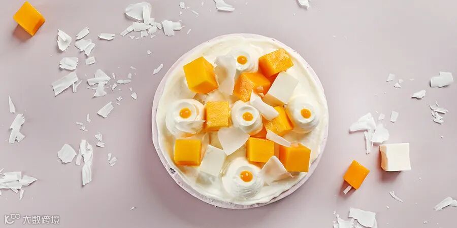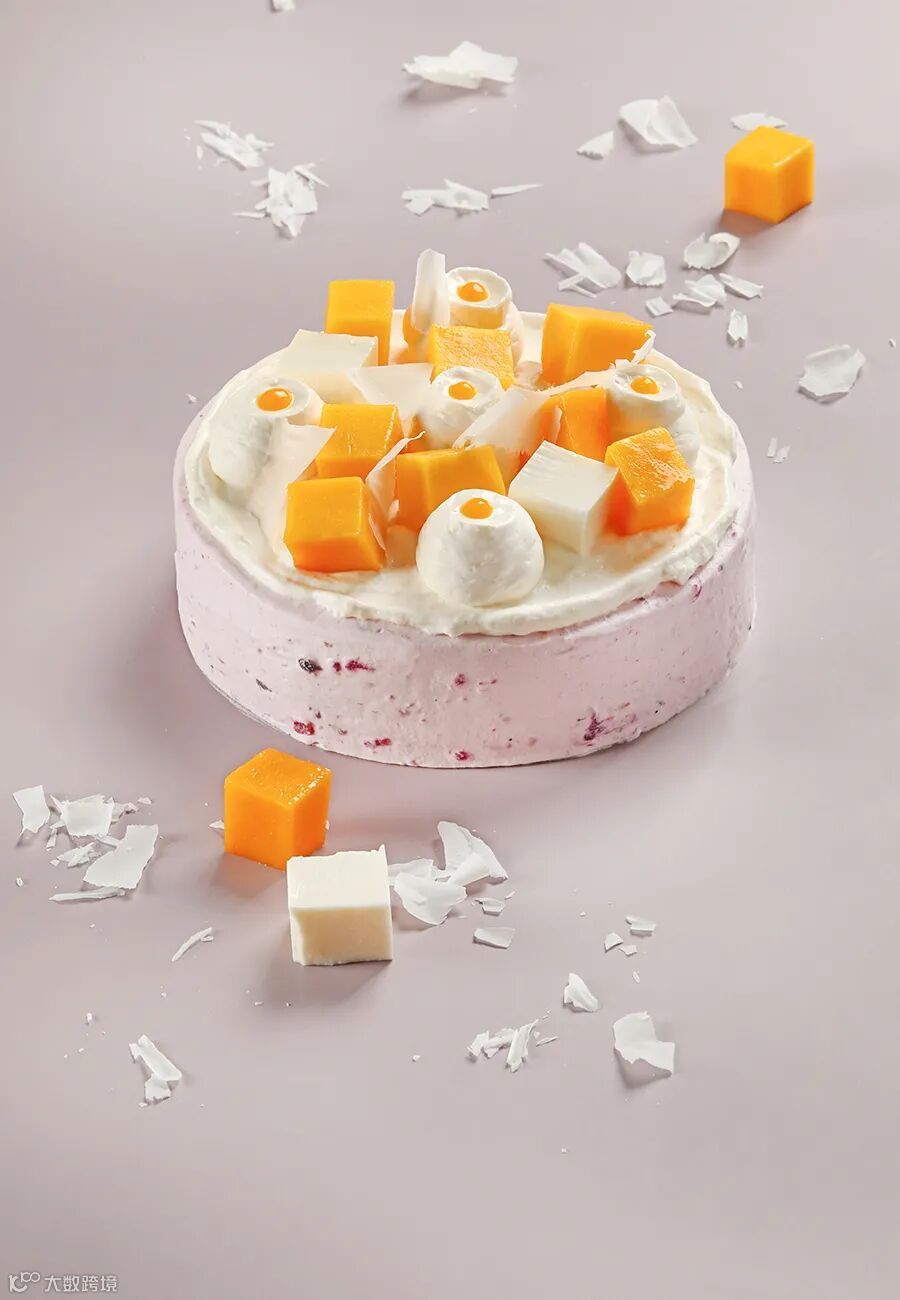 新西兰安佳淡奶油/椰子香缇奶油/紫薯香缇奶油/椰子果冻/新鲜芒果/白巧克力碎/紫薯戚风胚