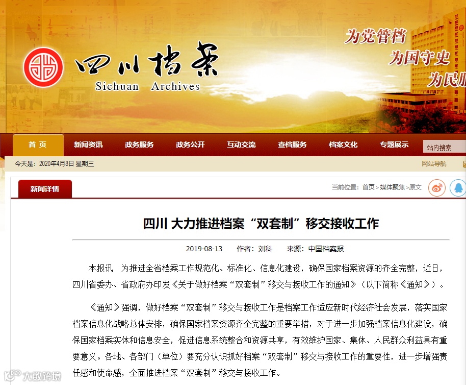 2、“双套制”作为档案管理从传统纸质档案到点子档案的过度手段,是目前四川作为推进档案信息化建设的良好方案。