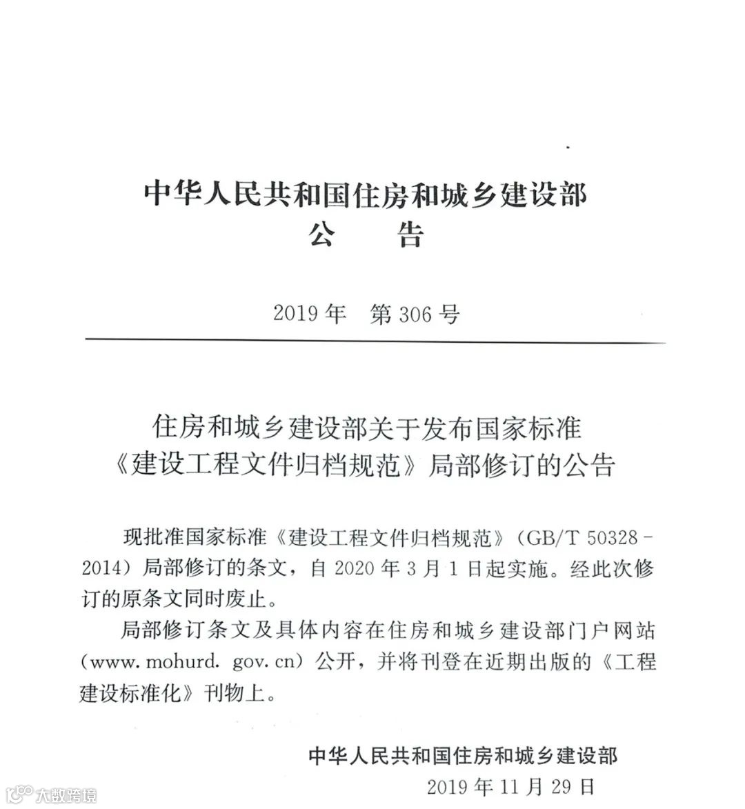2019年,住建部发布了关于国家标准《建设工程文件归档规范》局部修订的公告。