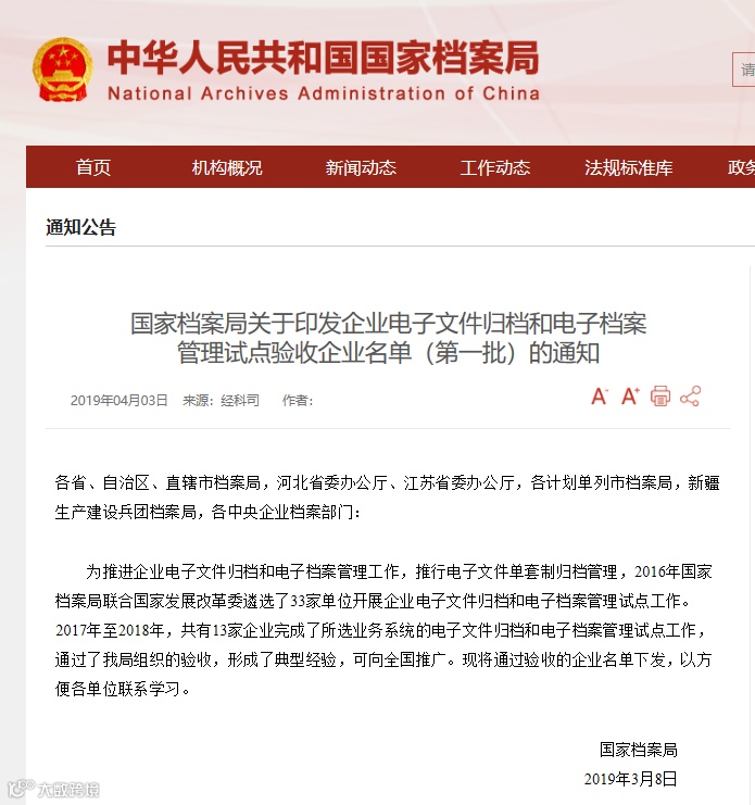 一是《电子公文归档管理暂行办法》, 2018年12月24日发布施行的国家档案局第14号令。文件打破了以往电子文件在系统里的处理方式。