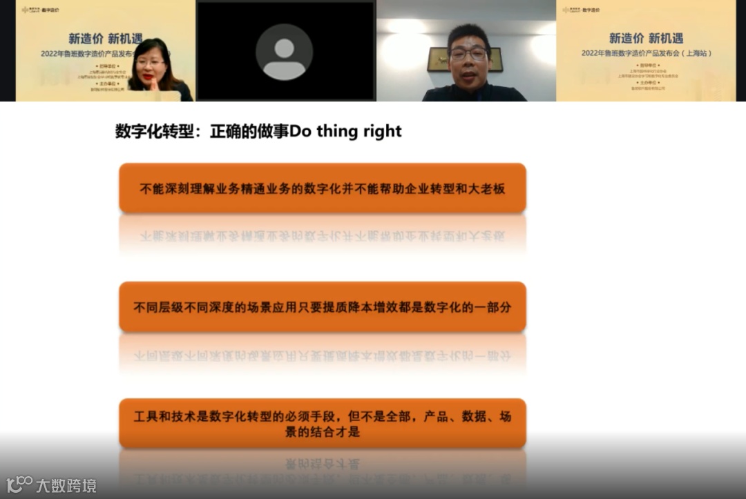 2022年3月25日,“新造价,新机遇——2022年鲁班数字造价产品发布会”云直播成功举办。本次活动由上海市园林绿化行业协会与上海市建设协会学习和数字化专业委员会指导,鲁班软件股份有限公司主办。发布会邀请了鲁班研究院院长张江波、凯谛思建设工程咨询(上海)有限公司执行董事邹春明、鲁班软件数字造价事业部总经理李春蓉、鲁班软件数字造价事业部技术经理沈月婷进行了专题分享,活动吸引了近万人参与关注。