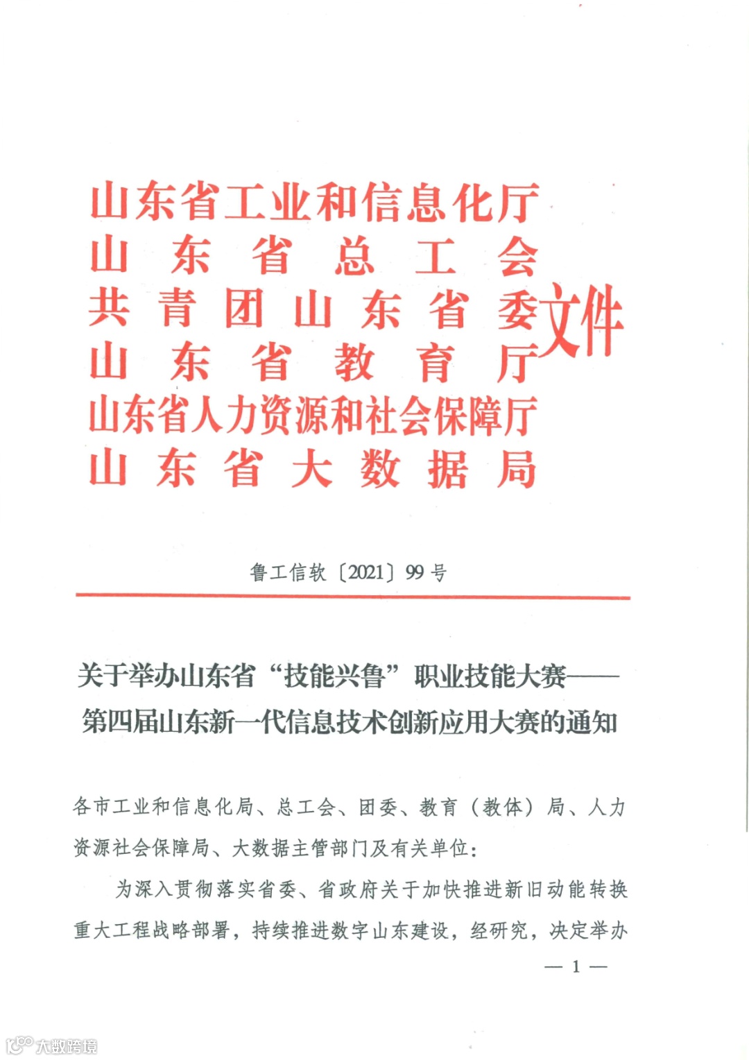 导读:四届山东新一代信息技术创新应用大赛通知