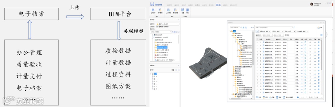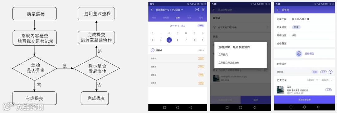 通过手机端发起协作验收流程,流程可直接拍摄现场问题位置,调取相关资料文件,指定相关人员复核问题,手机端不仅方便快捷,还能够直接反查模型,形成动态化质量追溯。