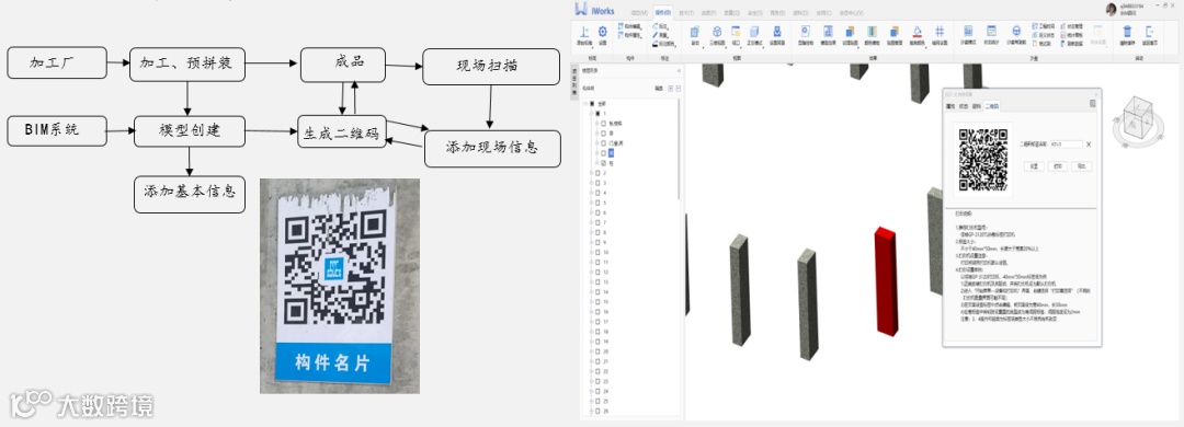项目利用鲁班BIM平台将构件名称、编码、图纸、原材料合格证明、制作安装验收资料和检测报告等信息关联至BIM模型,自动生成二维码并张贴在构件上,扫一扫即可获取该构件的所有信息,提高构件制作安装的标准化、信息化管理水平。