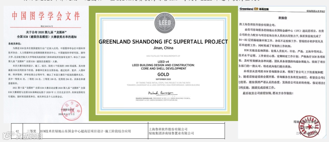 项目在2020年第九届“龙图杯”全国BIM大赛获得综合组三等奖;LEED评选中获得金奖。