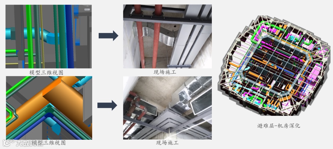 本项目充分应用BIM模型进行可视化模拟和形象交底,保障项目复杂节点和重要施工工序的顺利进行。并按项目需求建立了土建、机电等专业文件,形成了后续项目可重复利用的宝贵文件。